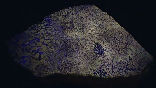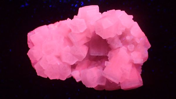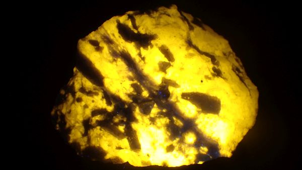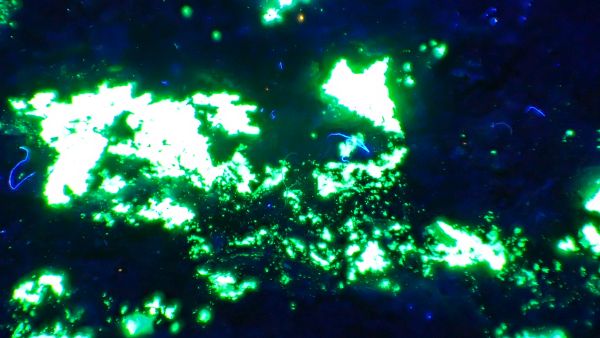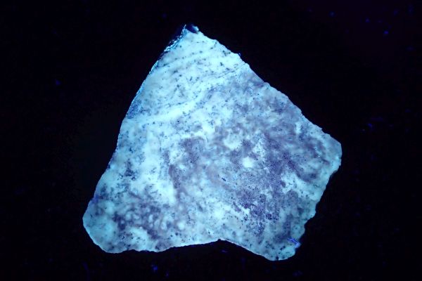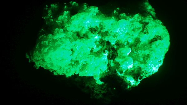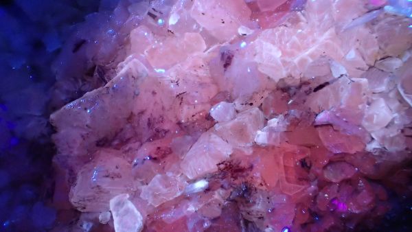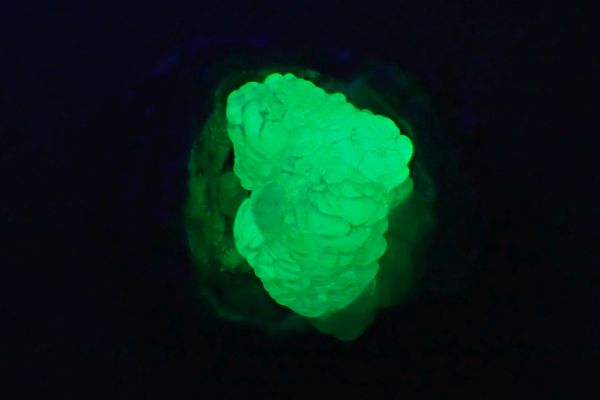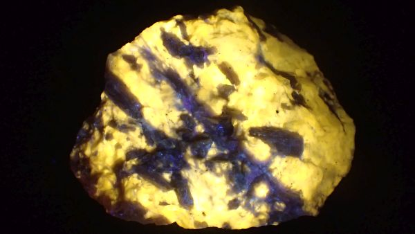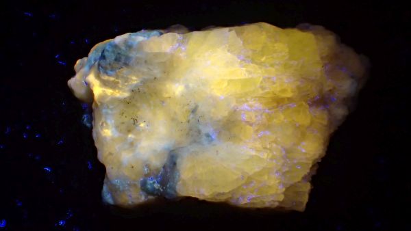 Willemit, kalcit, Star Zinc Mine, Lusaka, Zambie v UVB (svítí kalcit)