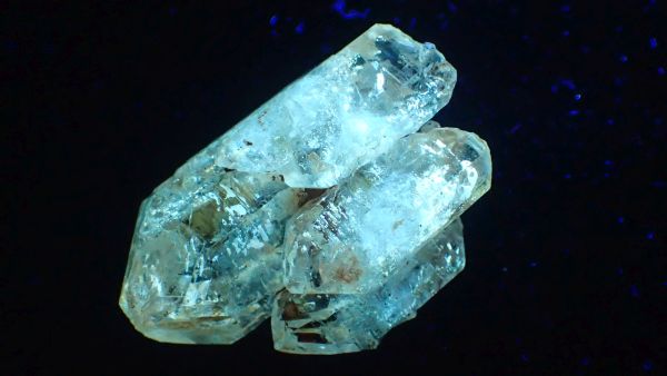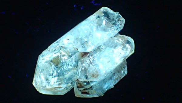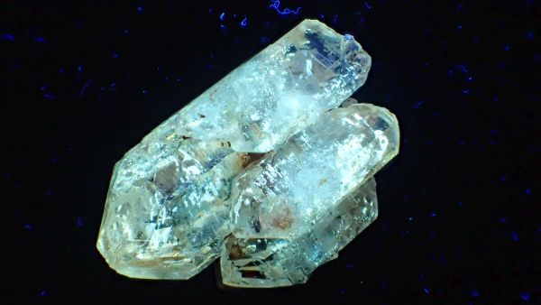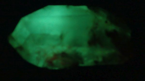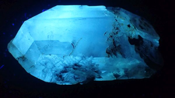 - křemen – svítící v UVA/B/C (lokalita Madagaskar, ropné inkluze)