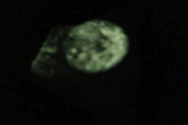 Tugtupit, Grónsko po ozáření v UV – u tohoto vzorku velmi malá tenebrescence