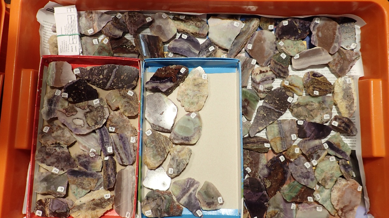 Horní Halže, ametyst, křemen (některý s Fe a Mn povlaky)